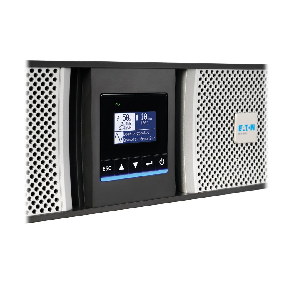 The Eaton 9PX G2 online, double-conversion UPS provides flexible protection for equipment in IT racks, Network closets, Data centers, Server rooms and Mission-critical applications. This flexible model can be rack mounted in a 4-post rack or used in a tower form. Optional Extended Battery Modules (EBMs) are available to provide extended battery runtime, as well as software options for remote monitoring, troubleshooting, and cybersecurity. With an LCD display showing battery runtime and outage details, constant power conditioning and ENERGY STAR qualification, the 9PX integrates seamlessly into just about any environment.