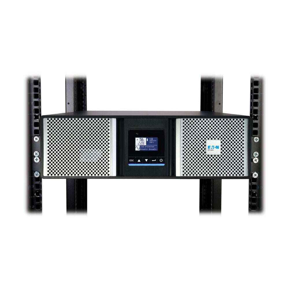 The Eaton 9PX G2 online, double-conversion UPS provides flexible protection for equipment in IT racks, Network closets, Data centers, Server rooms and Mission-critical applications. This flexible model can be rack mounted in a 4-post rack or used in a tower form. Optional Extended Battery Modules (EBMs) are available to provide extended battery runtime, as well as software options for remote monitoring, troubleshooting, and cybersecurity. With an LCD display showing battery runtime and outage details, constant power conditioning and ENERGY STAR qualification, the 9PX integrates seamlessly into just about any environment.